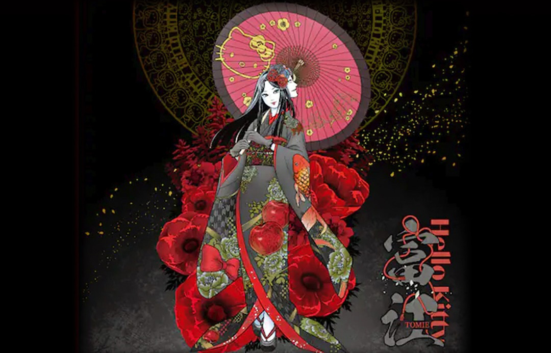 Dalam edisi terbaru kolaborasi Junji Ito × Sanrio, Tomie tampil dengan gaya yang belum pernah kamu lihat sebelumnya — mengenakan kimono mewah dengan detail yang memancarkan keanggunan sekaligus misteri. Aura menakutkan khas Tomie masih terasa, tapi dibalut dengan pesona fesyen yang membuatnya terlihat seperti dark queen dari dunia kawaii.