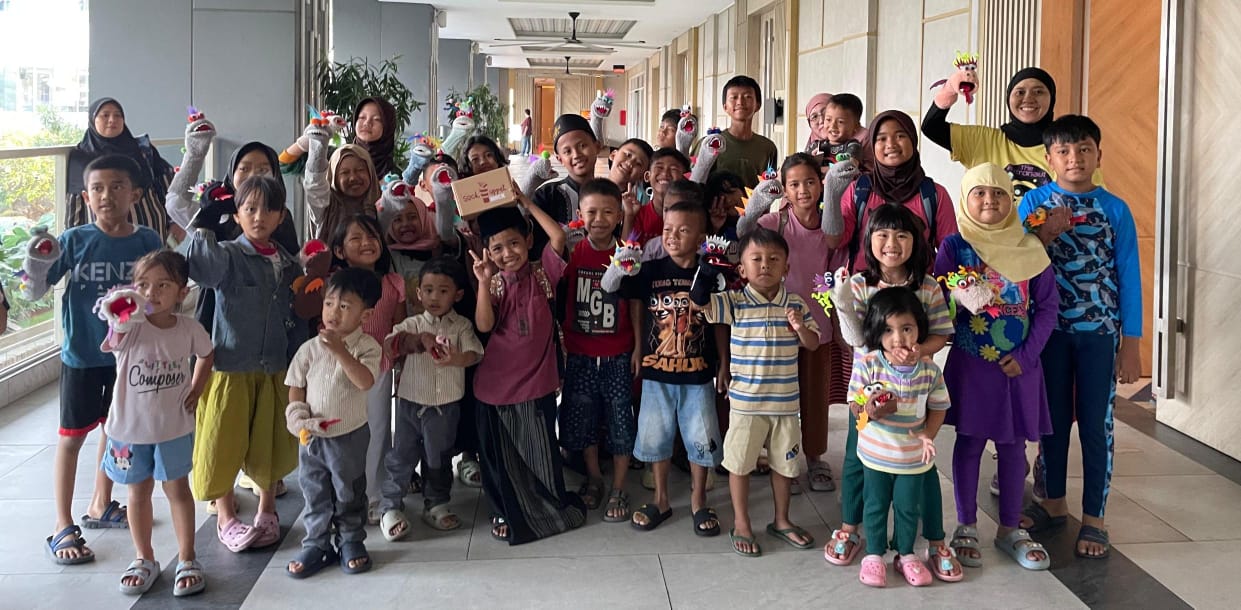 Bertajuk acara yang penuh keceriaan dan semangat belajar, anak-anak diajak mengikuti Sock Puppet Class—kelas membuat boneka tangan dari kaus kaki yang seru banget! Dengan bahan-bahan yang telah disiapkan, mereka bebas menuangkan kreativitas dan imajinasi untuk menciptakan karakter boneka versi mereka sendiri.