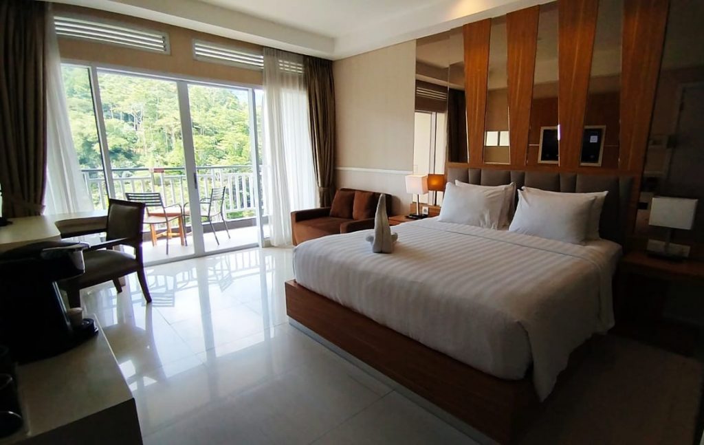 - Kamar Junior Suite yang luas dengan balkon menghadap pegunungan