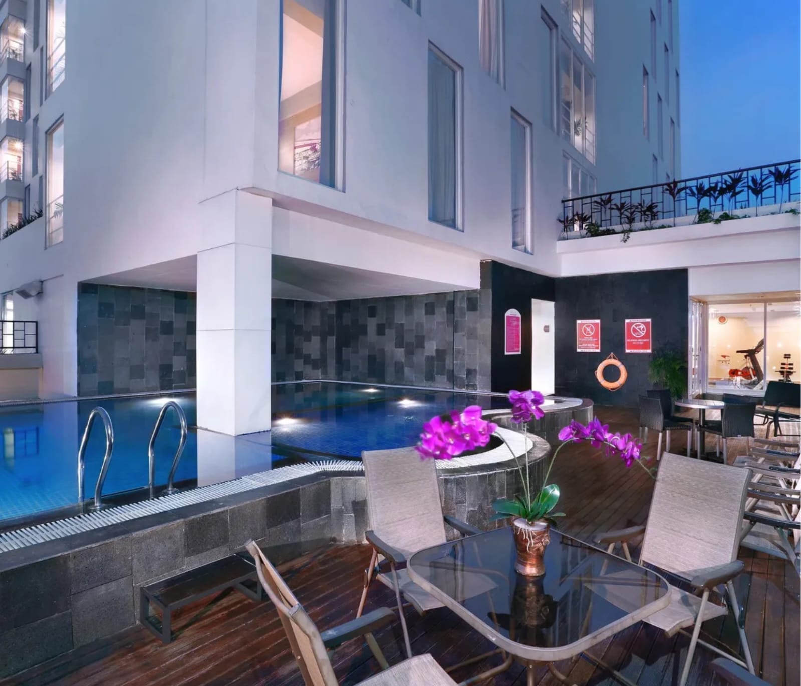 Untuk tamu yang ingin tetap bugar, Gym di lantai 5 dilengkapi peralatan kebugaran lengkap. Selesai berolahraga, Wellness Spa siap memberikan pengalaman relaksasi melalui berbagai perawatan dan pijat tradisional. Tidak ketinggalan, area kolam renang outdoor di lantai 5 menawarkan pemandangan kota yang menyegarkan, cocok untuk berenang santai atau sekadar menikmati sore hari.