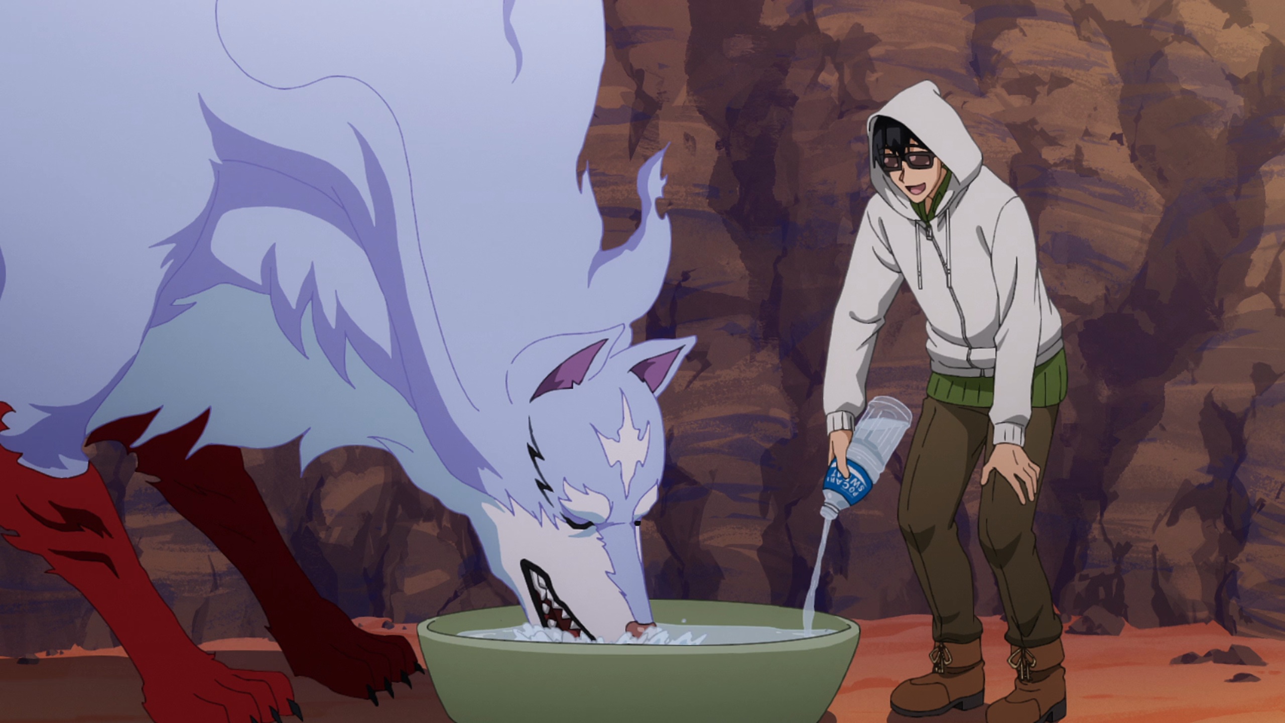 Di momen inilah, Pocari Sweat muncul. Tidak dipamerkan berlebihan, tidak disebutkan dengan nada iklan. Minuman tersebut hadir sebagai solusi logis untuk menjaga hidrasi di tengah kondisi ekstrem. Mukouda membagikannya kepada Fel, Sui, dan Dora-chan, memperlihatkan bahwa bahkan makhluk legendaris pun membutuhkan cairan untuk bertahan.